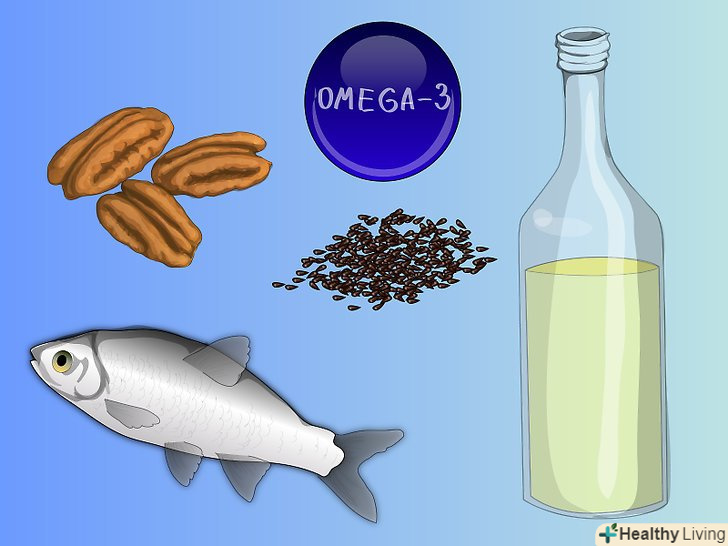 Збільште прийом Омега-3. Омега-3-це відмінний продукт для мозку, так як це жирна кислота з високим вмістом ДГК, яка необхідна для поліпшення ясності мислення і запобігання втрати пам'яті і недоумства. Використовуйте добавку з ДГК. [24] Жирнач риба (лосось, біла риба, тілапія, сом, камбала, форель), риб'ячий жир, волоські горіхи і насіння льону – це хороші джерела Омега-3. [25] Look for wild-caught saltwater fish.- Спробуйте насіння Чіа, які багаті Ala і Eha Омега-3, додаючи їх в кашу, смузі або морозиво, або посипаючи ними продукти. Вмішайте їх в хрустке (або гладке) арахісове масло. Спробуйте приготувати смузі з молока і насіння льону.