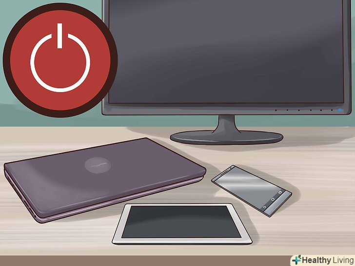 Вимикайте всі гаджети.не забудьте вимкнути смартфон, планшет, ноутбук і телевізор! Якщо перевіряти електронну пошту або дивитися улюблений серіал під час прийому їжі, можна непомітно для себе збільшити розмір порцій, адже так людина не помічає, скільки він з'їдає за один присід.[12]- Заведіть правило вечеряти за столом. На роботі вимикайте комп'ютер і програми, які можуть вас відвернути.