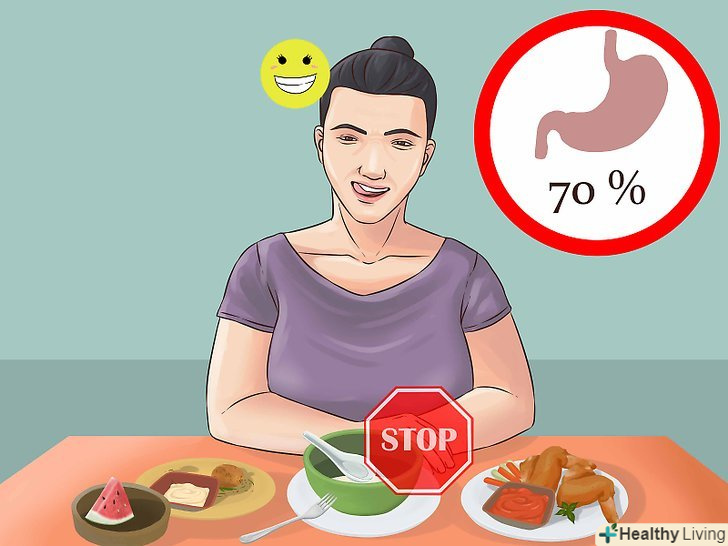 Зупиніться в момент задоволення, а не насичення. Важливо розуміти різницю між двома явищами. Доречна невелика порція їжі дозволяє випробувати задоволення після прийому їжі.- Зазвичай задоволення означає відсутність почуття голоду. Також можна помітити втрату інтересу до їжі або поява ледь помітного відчуття наповнення шлунка.