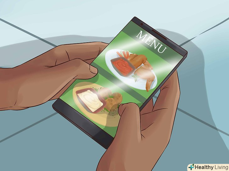 Вибирайте страви до походу в ресторан. Збирайте інформацію заздалегідь. Якщо знати доступні страви наперед, то вам буде простіше впоратися зі спокусою і дотримуватися обраний розмір порцій.- Вивчіть меню і поживну цінність страв на сайті закладу. Виберіть пару відповідних варіантів, які Вас зацікавили і не перевищують стандартну порцію.
