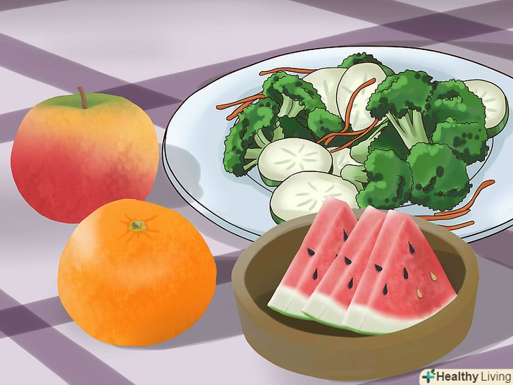 Збільшуйте порції фруктів і овочів.прагніть вживати в їжу хоча б п'ять порцій фруктів і овочів щодня. Такі низькокалорійні джерела енергії містять велику кількість необхідних поживних речовин.