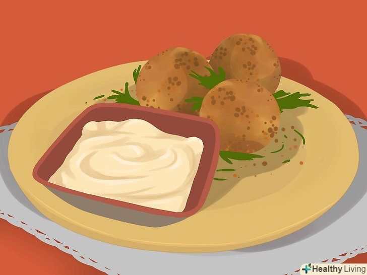 - Найкраще вибирати закуски з пісним білком і овочами або фруктами. Таке здорове поєднання дозволить довше відчувати насичення, ніж після інших закусок на основі вуглеводів.[8] приклади: нежирна сирна паличка і невелике яблуко, дві столові ложки горіховою пасти і стебла селери або ¼ склянки хумуса і морква.