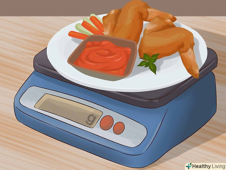 Виміряйте нинішні порції.Подайте на стіл звичні порції їжі і визначте кількість їжі. Так ви дізнаєтеся певний розмір своєї нинішньої порції. Ви вживаєте в їжу 150 грамів курки, 1 стакан салату і 1 стакан рису? Розберіться з розміром звичних порцій, щоб визначити, як необхідно змінити розмір порції.- Купуйте кухонні ваги або набір мірних склянок, щоб точно визначати кількість їжі. Ці пристосування значно допоможуть вам дотримуватися нові розміри порцій.