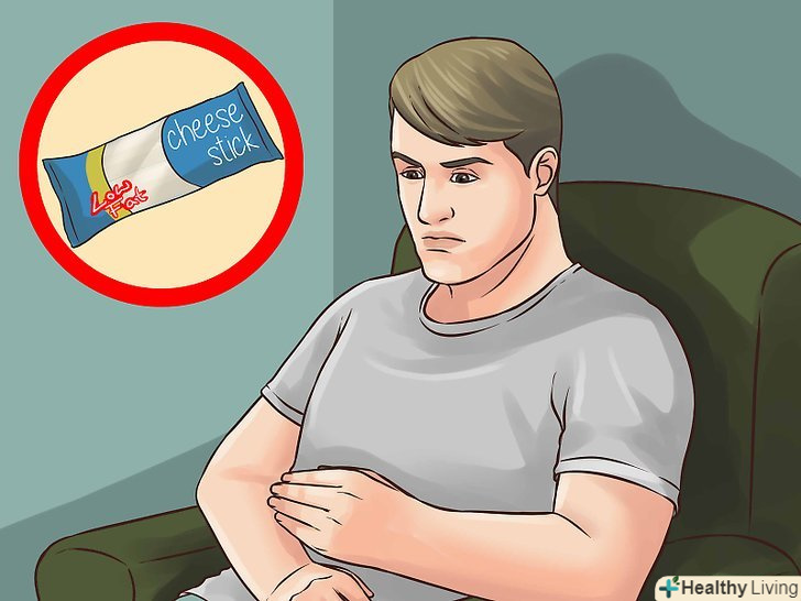Оцінюйте рівень голоду.аналізуйте свій рівень голоду протягом дня. Якщо дозволяти собі відчувати сильний голод, то результатом може стати переїдання. Значно складніше дотримуватися невеликих порцій, якщо людина сильно зголоднів.- Якщо ви відчуваєте голод вже після обіду, а вечеря буде не раніше вечора, то рекомендується перекусити. Невеликий перекус допоможе вам протриматися до наступного прийому їжі і при цьому не переїдати.