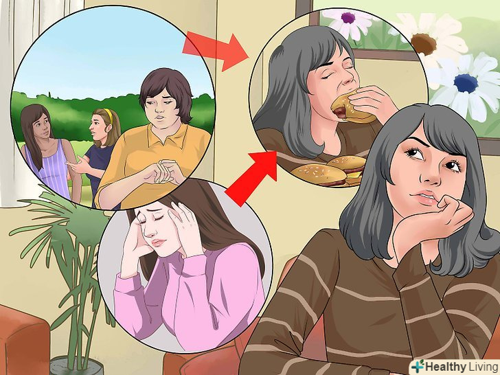 Зрозумійте зв'язок емоційних переживань з компульсивним переїданням.психогенне переїдання зазвичай відбувається потай від оточуючих і часто викликає почуття провини або сорому.[12] щоб впоратися з цими негативним емоціями, людина починає заїдати їх, однак при цьому не відчуває полегшення. Так формується замкнуте коло, яке буде продовжуватися, якщо проблему не вирішити тим чи іншим чином.[13]- Їжа може відвернути від негативних емоцій або зменшити їх, але, як правило, полегшення настає лише на час.