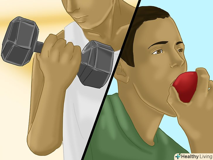 Сумлінно заповните втрачені калорії.виконання вправ призводить до спалювання енергії, яку ви накопичуєте в своєму організмі, але воно також стимулює апетит.[9] реагуючи на потребу енергії, Ви зможете краще сформувати і зміцнити харчові звички.- Вам слід приділити цьому особливу увагу, щоб упевнитися, що Ви отримаєте достатньо білка для побудови м'язової маси після дня в тренажерному залі. Дуже корисними будуть м'ясо, яйця, сири, вітамінні добавки і коктейлі, спеціально призначені для прийому після тренувань.