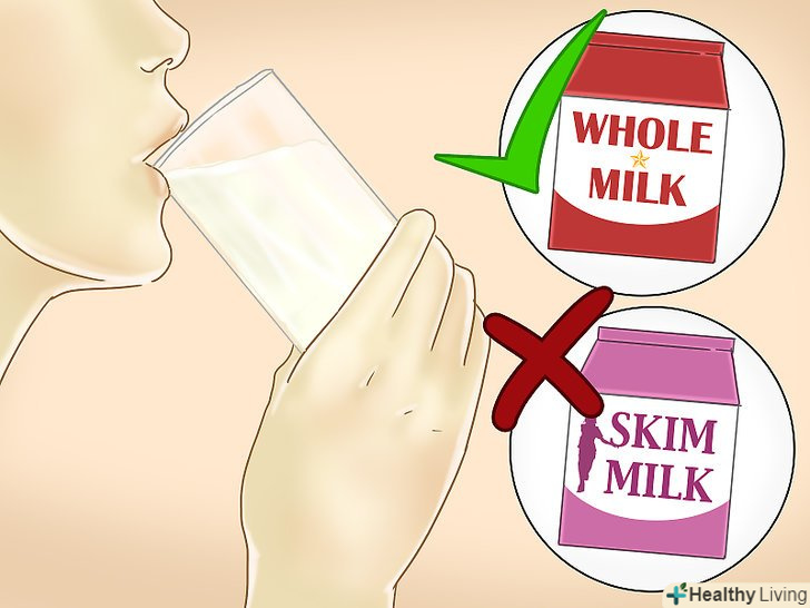 Пийте незбиране молоко, а не знежирене.намагайтеся завжди віддавати перевагу необезжіренним продуктам. Після споживання продуктів з малим відсотком жирності ви будете так само ситі, як і після споживання необезжіренних продуктів, однак при цьому ваш організм отримає менше поживних речовин.- Дане правило не відноситься до м'яса. Хоча жирне м'ясо не є поганим вибором (воно дешевше, ніж нежирне), в нежирному м'ясі більше білка, який так нам необхідний.