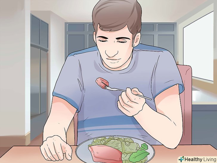 - Якщо ви маєте намір привести своє тіло у форму, білок буде відігравати важливу роль у вашому раціоні. Він буде давати вам енергію для тренувань і підтримувати обсяг м'язової маси. З'їдайте 85-115 грамів білка з кожним прийомом їжі.[14]