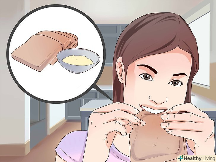 - Перед тренуванням краще з'їдати щось невелике і складається з простих вуглеводів. Така їжа дасть вам швидкий приплив енергії для занять спортом.[19] З'їжте фрукт, шматочок цільнозернового хліба з джемом або випийте склянку нежирного молока.