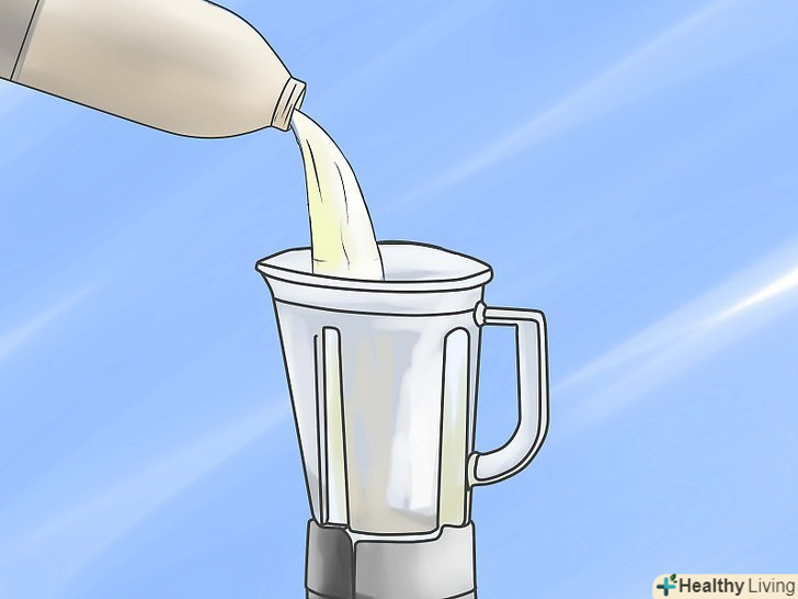Налийте 1 склянку молока (коров'ячого, кокосового, соєвого) в блендер.