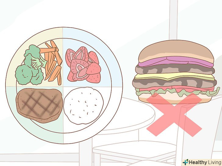 Регулярно харчуйтеся і контролюйте розмір порцій. регулярно їжте невеликі страви протягом усього дня і стежте за тим, щоб ваш раціон був здоровим і добре збалансованим. Це допоможе вам підтримувати постійний рівень цукру в крові і запобігти тягу до нездорової їжі. Намагайтеся їсти якомога менше цукру. Солодощі смачні, однак вони призводять до підйому, а потім різкого падіння рівня цукру в крові.[7]