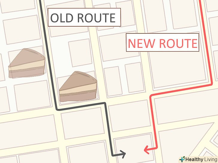 Уникайте провокуючих вас ситуацій.якщо існують місця або обставини, в яких ви більш схильні до тязі до нездорової їжі, тримайтеся від них подалі. Якщо при перегляді фільму в кінотеатрі Ви не можете обійтися без своїх улюблених цукерок, не ходіть в кінотеатри. Якщо при відвідуванні будь-якого ресторану зі своїм другом ви завжди замовляєте певні тістечка, змініть ресторан і ходите в такий заклад, де немає тістечок. Постарайтеся триматися подалі від спокус.[6]