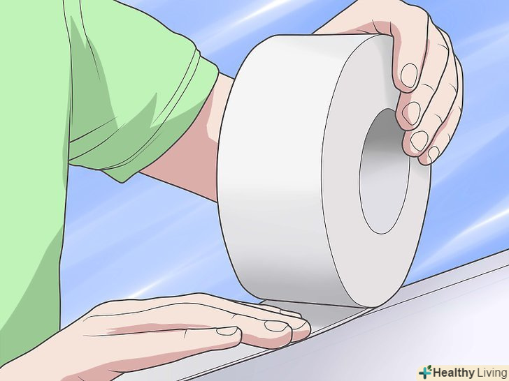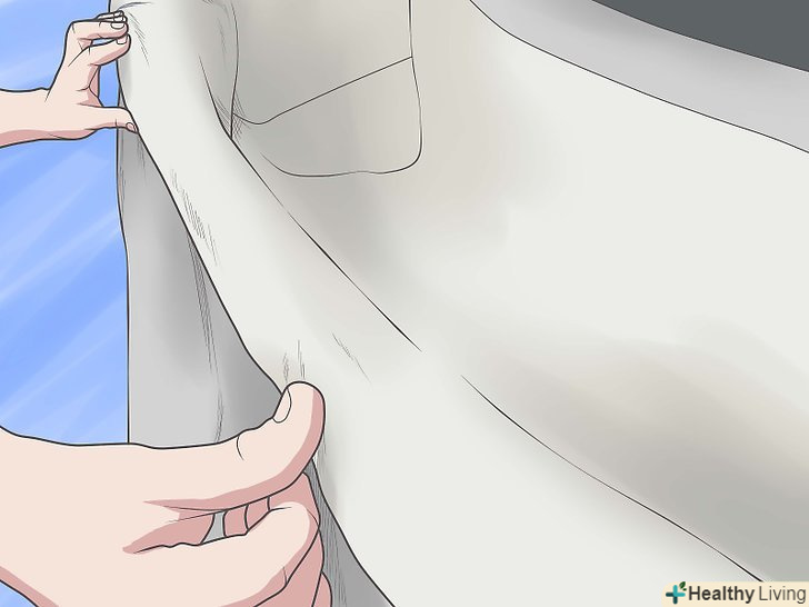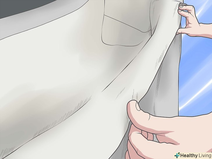 Протріть насухо тканину в місці кріплення стрічки і прогрійте феном (не сильним гарячим повітрям) для досягнення найбільшої стійкості.- Складна дах повинна бути зафіксована.