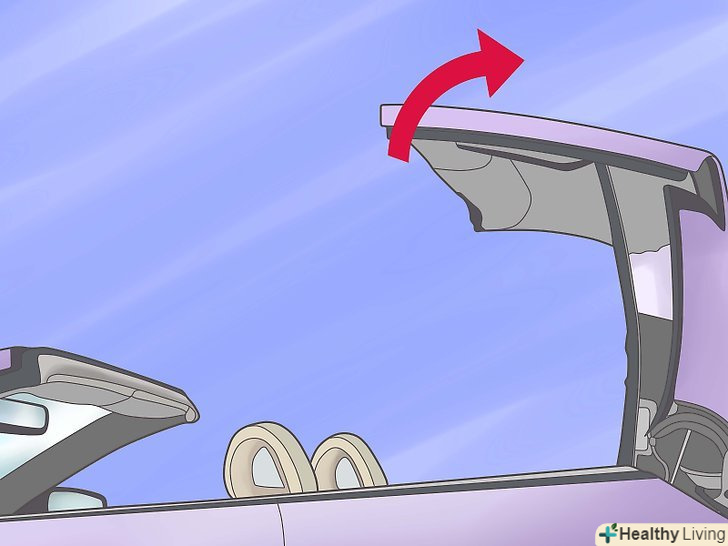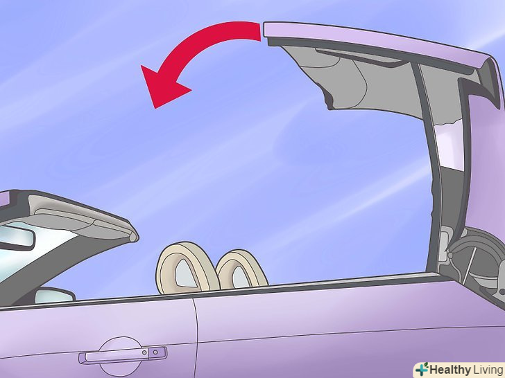 Відкрийте трохи верх, щоб не було натягу.підіпріть чимось, наприклад, невеликою порожньою коробкою переднє ребро даху і верхнє ребро рами вітрового скла, щоб дах залишався злегка відкритим.