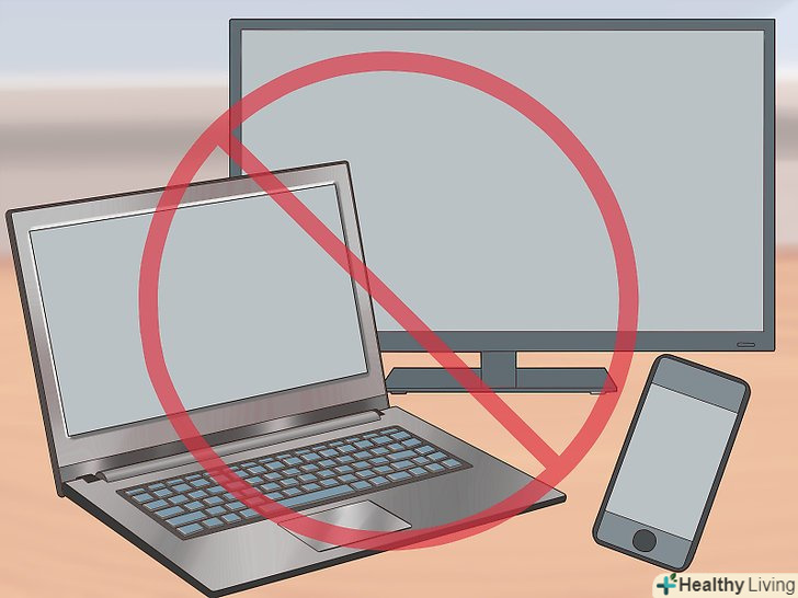 Скоротіть час перед телевізором.Встановіть для себе і своєї сім'ї правила щодо проведення часу перед екраном телевізора, комп'ютера і телефону. Коли людина дивиться телевізор, він, як правило, не проявляє ніякої активності. Перегляд серіалів і фільмів спонукає до споживання шкідливої їжі. Зменшіть час перед телевізором до декількох годин ввечері, щоб вести активний спосіб життя протягом усього дня.[12]
