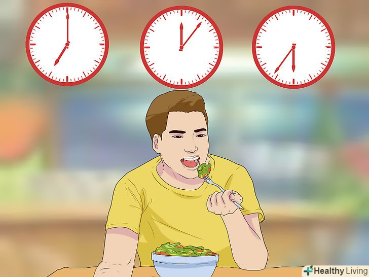 Їжте одночасно.Тримайте обмін речовин під контролем, снідаючи, обідаючи і вечеряючи в один і той же час. Це допоможе вам утриматися від перекусів шкідливою їжею.[3]- Якщо вам захочеться чимось перекусити між основними прийомами їжі, з'їжте щось корисне, наприклад, грецький йогурт зі свіжою чорницею або 10-15 сирих горіхів.[4]