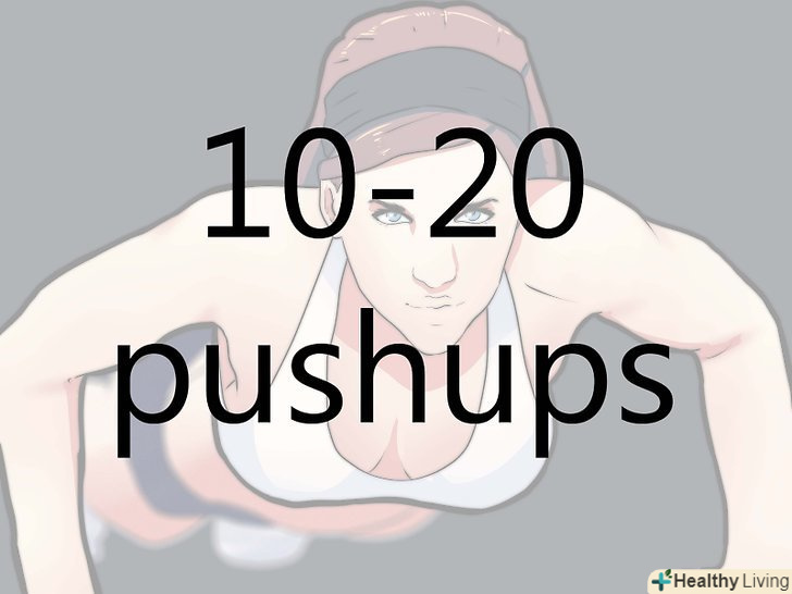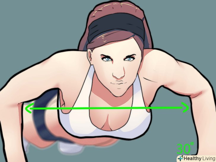 Робіть змінені варіанти віджимань.розставте руки ширше під кутом 30 градусів.- Зробіть 10 віджимань.