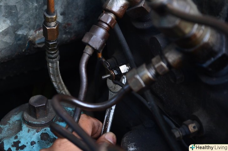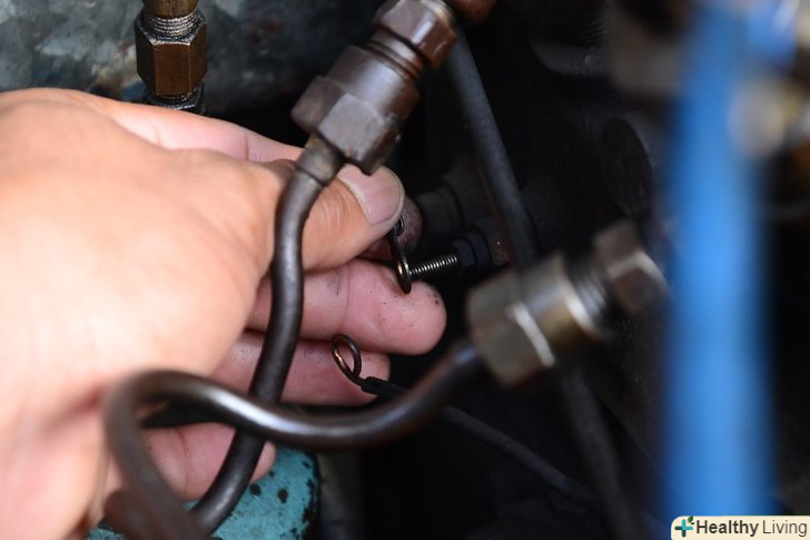 Від'єднайте дроти від свічок розжарювання.- Дроти свічок розжарювання розташовані під кришкою головки циліндрів. Ви побачите один край, підключений до верхньої частини свічки розжарювання і другий кінець, прикріплений до двигуна. Зніміть дріт, який підключений до свічки розжарювання. Відкрутіть гайковим ключем маленьку гайку, якою прикручений провід до свічки розжарювання. Відсуньте дріт в сторону. Повторіть ці дії з усіма проводами на свічках розжарювання.