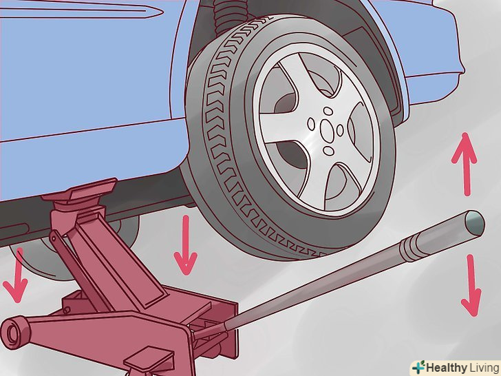 Опустіть автомобіль.скористайтеся домкратом. Дотримуйтесь інструкцій до Вашого домкрату.