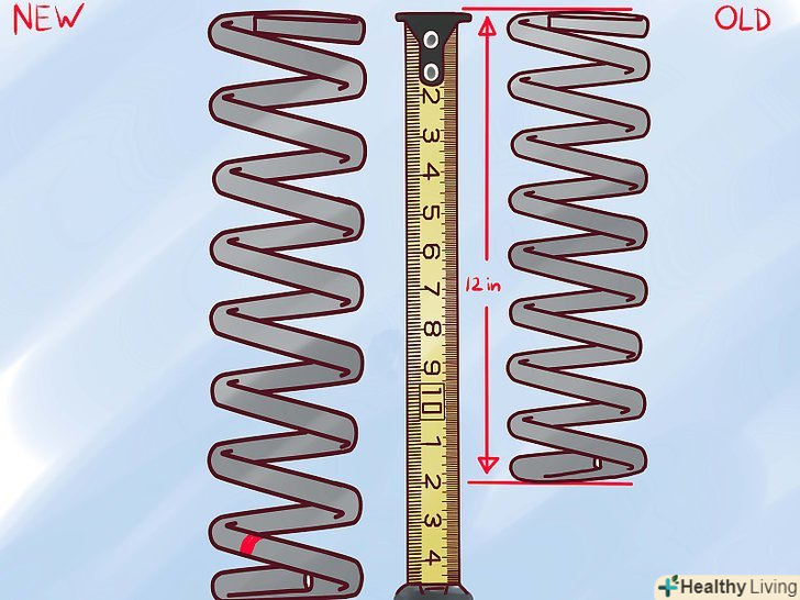 Виміряйте стару пружину амортизатора.скористайтеся рулеткою, щоб виміряти її довжину тоді, коли вона все ще затиснута в стійці.