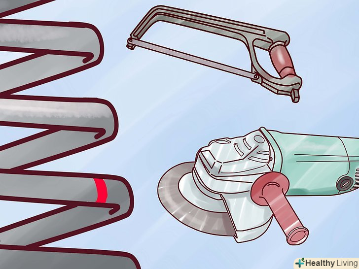 Відріжте пружину.використовуйте ножівку по металу або болгарку. Болгарка - це невеликий інструмент з диском, який шліфує або ріже предмети. Металевий коло болгарки повинен бути 4 дюйма (10,2 см) в діаметрі.