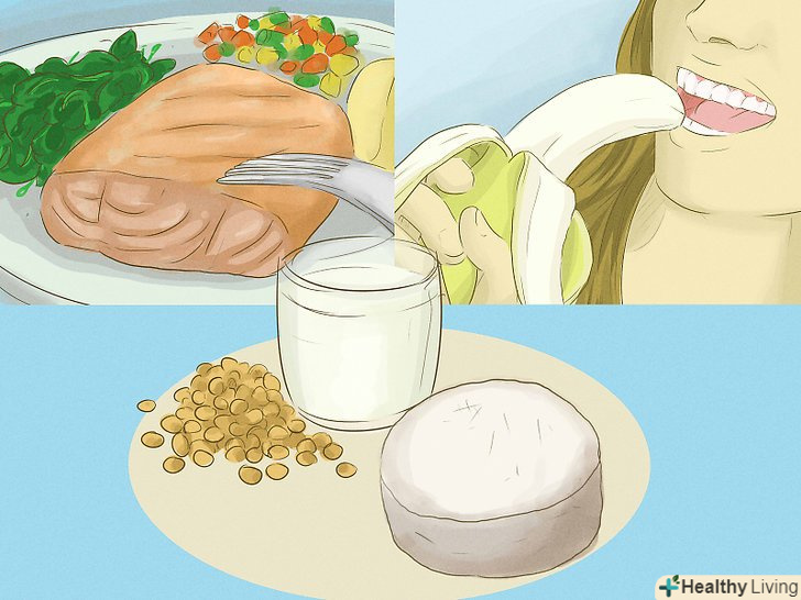 Приймайте вітамін D. деякі дослідження рекомендують збільшити споживання вітаміну D, який допомагає організму засвоювати магній.[21]- Ви можете вживати в їжу продукти, багаті вітаміном D, наприклад, тунець, сир, яйця і тверді зернові культури.