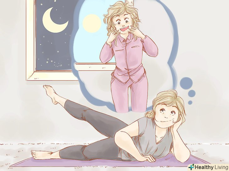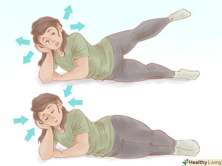 Робіть махи ногами як в пілатесі.ляжте на лівий бік, голова або лежить на лівій руці, або ви підтримуєте її лівою рукою. Зігніть праве коліно і підніміть його над лівою ногою так, щоб права гомілка не відривалася від підлоги. Під час вдиху ліву ногу тримайте рівною і піднімайте на кілька сантиметрів, а на видиху опускайте ногу. На кожну сторону робіть по три підходи з десятьма повтореннями.- Коли піднімаєте ноги, намагайтеся тримати тулуб якомога рівніше.