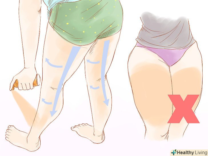 За допомогою автозасмаги створіть видимість доглянутих ніг. Крем для автозасмаги не подарує вам просвіт між стегнами, але якщо належить показати ноги в купальнику або міні-спідниці, ви можете скористатися кремом, щоб створити видимість струнких і доглянутих ніжок.- Нанесіть на ноги зверху донизу засіб для автоматичної засмаги. Ви можете піддатися спокусі і нанести крем тільки на стегна, щоб створити видимість тіні, але в такому випадку різниця в кольорі між стегнами і щиколотками буде виглядати неприродно, так що нанесіть засіб на ноги повністю.