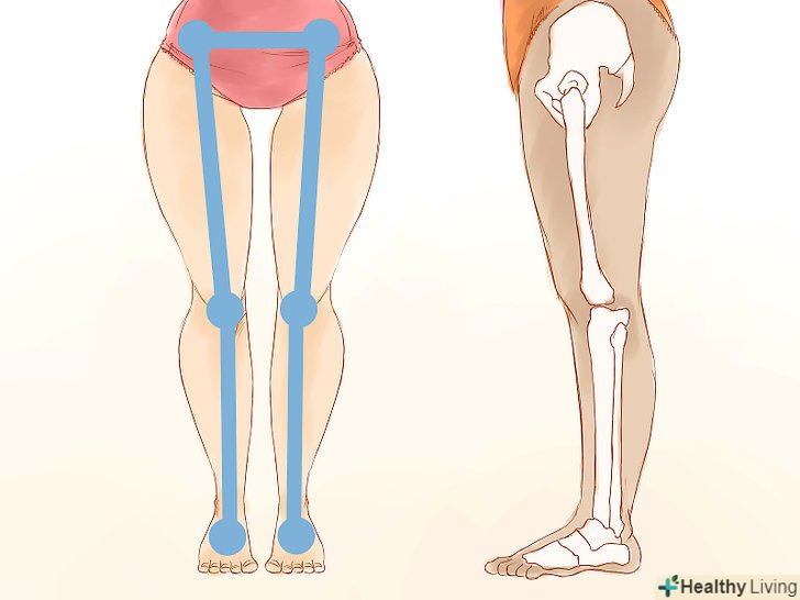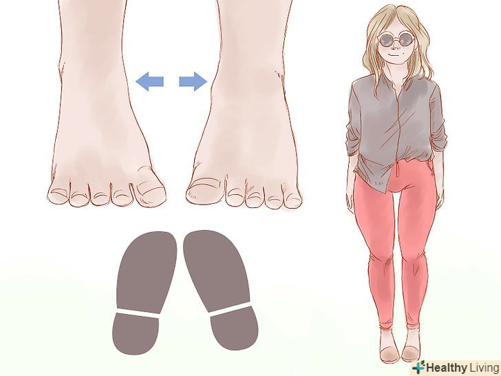 Нахиліться вперед.[9] П'яти розведіть, а шкарпетки, навпаки, зведіть разом. Не забудьте поставити ноги так, інакше поза не буде виглядати природно або правдоподібно.