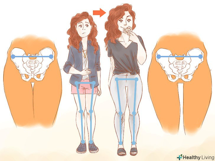 Дочекайтеся закінчення пубертатного періоду.найвірніший шлях до просвіту між стегнами, крім схуднення, це ширина таза. Якщо ви ще не пройшли пубертатний період, то, швидше за все, ваш таз просто ще не досить широкий. Остаточне дозрівання більшості дівчат відбувається у віці 16-17 років, але в деяких випадках цей процес може затягнутися.[10] Постарайтеся бути терплячою!- Не потрібно голодувати. Пубертатний процес супроводжується зростанням і великими змінами в організмі, для яких необхідна велика кількість калорій і поживних речовин. Якщо ви будете обмежувати себе в цих елементах, ви сповільните розвиток власної фігури.