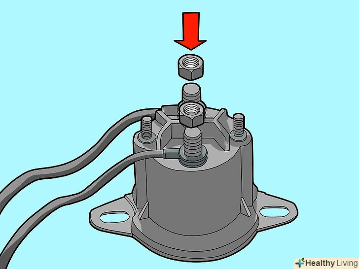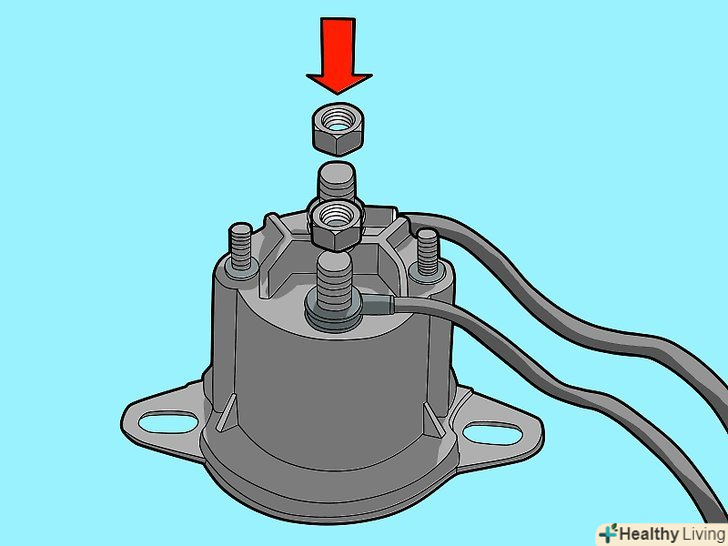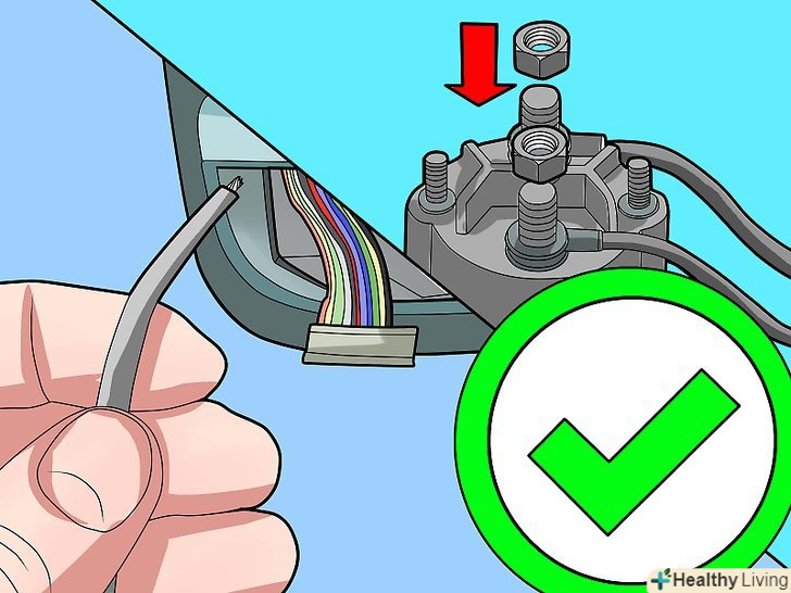 Підключіть один червоний дріт 10-калібру до позитивного ( + ) кабелю батареї.- Підключіть дріт до іншого, який йде до генератора. Зверніться до керівництва по експлуатації автомобіля і конкретним інструкціям по датчикам для уточнення деталей підключення проводки.