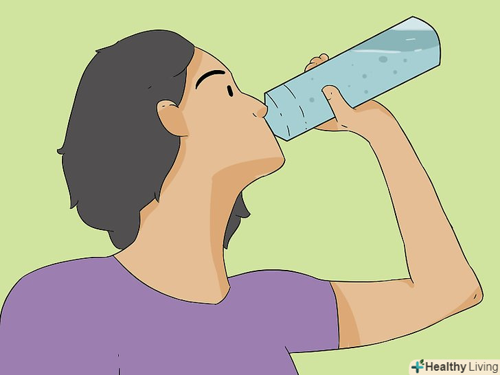 Пийте багато води. людське тіло на 50-65% складається з води, і вам потрібно поповнювати її запаси. Ваш організм виділяє цю воду у вигляді поту, так що вам потрібно заповнити її запаси.- Кількість води, яку потрібно пити, залежить від вашої ваги. Щоб розрахувати, скільки води ви повинні випивати, візьміть вашу вагу і помножте на 30. Так, наприклад, якщо ви важите 60 кг, то ви повинні випивати 1800 мл води на добу.[9]