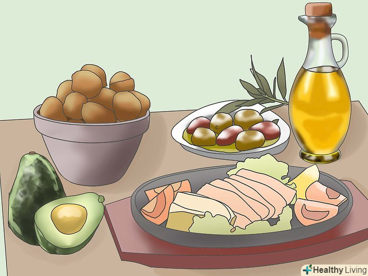Сконцентруйтеся на корисних жирах.ми вже зупинялися на них, коли розглядали приготування їжі, але про них можна розповісти більше. Жири особливо необхідні для вашого волосся, щоб вони були блискучими, для здорових нігтів і для того щоб ваша травна система працювала в звичайному режимі. Але ненасичені жири набагато корисніше насичених, що включають в себе трансжири. Джерелами корисних жирів є оливкова олія, авокадо і горіхи. Все повинно бути в міру, звичайно.- Ці продукти не повинні використовуватися в якостіДоповнення до їжі-використовуйте їх в якості замінників. Таким чином, замість гасіння овочів в рослинному маслі, тушкуйте їх на оливковій олії. Замість того, щоб з'їсти шоколадний батончик, візьміть жменю мигдалю. Вони калорійні, але ваш організм буде переробляти ненасичені жири більш ефективно.