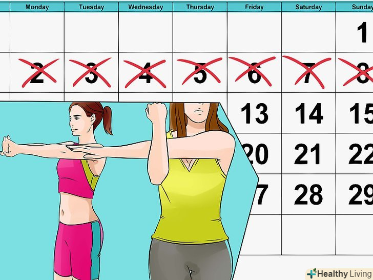 Не поспішайте.різке збільшення споживаних калорій на кілька сотень в день може мати поганий вплив на ваше серце, кров'яний тиск, травлення та інші системи організму. Поступово збільшуйте обсяг калорій, щоб підготувати свій організм. Почніть з додаткових 300 калорій на день протягом тижня, потім збільште це число до 600, і так далі. Коли ви почнете дієту з набору ваги, це допоможе уникнути початкового шоку.[4]- Розбийте дієту на кілька етапів. Визначте, скільки ви хочете набрати за тиждень або за місяць. Таким чином, ви зможете підготувати своє тіло до набору ваги.