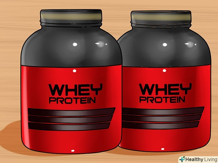 Пийте Протеїнові коктейлі.крім збільшення споживання їжі, ви можете збільшити масу тіла, почавши приймати Протеїнові коктейлі. Протеїнові коктейлі мають кілька різновидів і допоможуть вам набрати вагу і м'язову масу. Вживайте подібні товари строго по інструкції.[25]- Сироватковий протеїн дуже популярний, і ви можете додавати його в різні напої. Змішайте разом фрукти, йогурт і кілька мірних ложок протеїну, щоб приготувати коктейль.