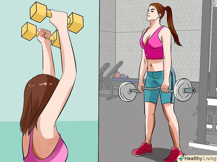 Виконуйте правильні вправи. тільки те, що ви намагаєтеся набрати вагу, не означає, що ви повинні відмовитися від фізичних вправ. Ви не повинні припиняти рухатися і починати вести сидячий спосіб життя.[23]- Силові тренування можуть перешкодити вашому бажанню набрати жир, якщо робити їх неправильно. Такі тренування прискорюють метаболізм, через що спалюється більше калорій. Наситьте свій організм калоріями після заняття спортом, щоб компенсувати втрачені калорії і продовжити набирати вагу.[24]