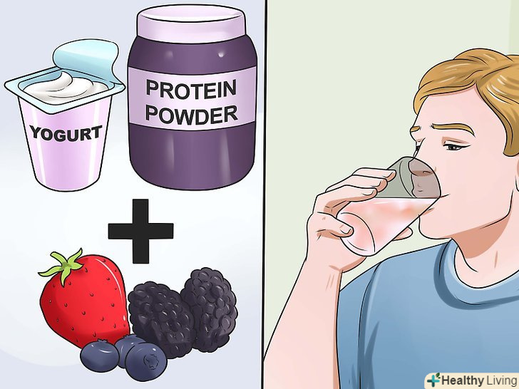 - Прекрасно підходять смузі з овочів і фруктів. Вони містять велику кількість калорій, легко засвоюються організмом, до того ж їх можна заправляти різноманітними натуральними добавками, такими як пророщені зерна пшениці, горіхове масло, протеїновий порошок.[6]
