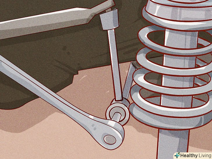 Від'єднайте стрижень стабілізатора в разі необхідності.він також називається стабілізатором поперечної стійкості і працює разом зі стійкою, стабілізуючи автомобіль під час ударів і в нерегулярних дорожніх умовах. Щоб зняти стабілізатор, вам потрібно видалити монтажний кронштейн за допомогою торцевого ключа і прибрати стабілізатор в сторону.- Знайдіть невелику металеву скобу, яка кріпить металевий стрижень (зазвичай Чорний) до стійки і зніміть її. Знову ж таки, не на всіх автомобілях це буде перешкодою, тому вам може просто знадобитися відкрутити стійку від поворотного кулака і звільнити її. Як тільки ви приберете ці перешкоди, ви готові демонтувати стару стійку.