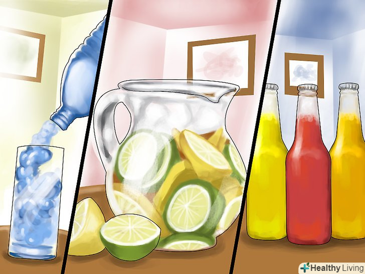 Знайдіть альтернативу солодощі напою.для багатьох солодкість і карбонізація газованої води роблять її найбільш привабливою. Існує безліч альтернатив, які допоможуть вгамувати вашу тягу. Існують навіть спеціальні пляшки і глечики, які можна наповнити травами або фруктами, щоб зробити напій власного приготування.[5]- Ароматизована та/або настояна вода