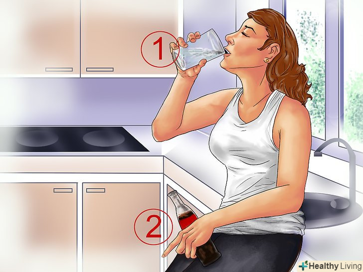 Випийте склянку простої води, перед тим як почнете пити газовану воду.так ви вже не будете відчувати спрагу до того моменту, коли візьмете в руки газований напій. Це допоможе зменшити кількість вживаної газованої води.[6]
