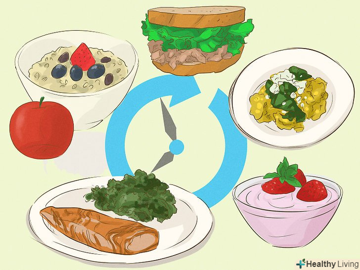 Їжте часто і потроху.часті прийоми їжі сприяють стабілізації рівня цукру в крові і підтримці енергетичного балансу.[22]- Раціон багатьох людей складається з трьох великих прийомів їжі в день. Однак якщо ви відчуваєте, що вам цього не достатньо, спробуйте їсти частіше.