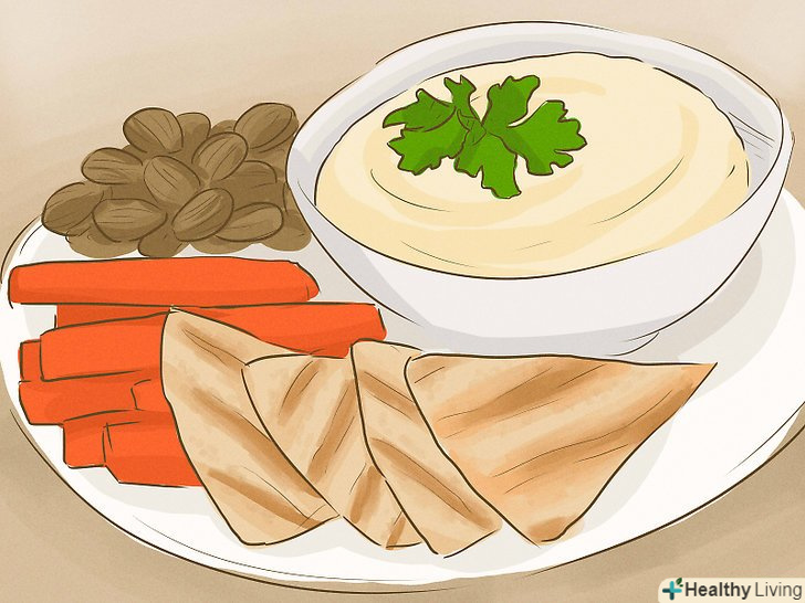 Влаштуйте полуденок.невеликий перекус в другій половині дня може підзарядити організм поживними речовинами і енергією. Головне-вибрати для цього правильні продукти.- Вибирайте для перекусу білки і складні вуглеводи. Білкова їжа дає організму сили і відчуття ситості. Їжа, багата клітковиною і складними вуглеводами, допомагає уникнути різкого підйому рівня цукру в крові.[1] білок і складні вуглеводи — відмінна комбінація для здорового полудня.