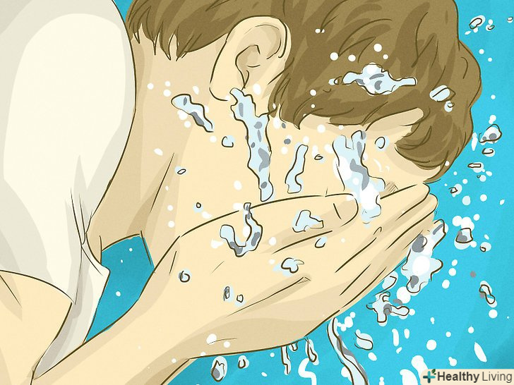 Вмийтеся холодною водою.щоб зняти денний стрес, хлюпніть холодною водою на обличчя і шию. Згідно з деякими дослідженнями, прохолодна вода допомагає прокинутися і відчути себе більш зосередженим.[8]- Відчувши сонливість, вирушайте у ванну кімнату і відкрийте кран з холодною водою. Вмивайтеся протягом декількох хвилин, поки не відчуєте, що ви знову бадьорі і сповнені сил.
