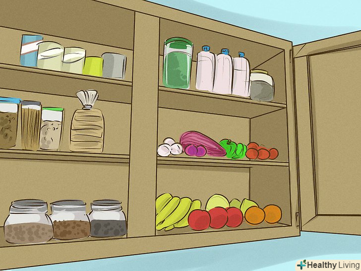 Купуйте корисні продукти з запасом.Правильно харчуватися і готувати корисні страви буде простіше, якщо у вас буде запас відповідних продуктів. Знаходьте час для походів за покупками щотижня і купуйте свої улюблені корисні продукти.- Якщо у вас завжди буде хороший запас продуктів тривалого зберігання, Вам буде легше стежити за харчуванням. Більшість продуктів буде завжди під рукою. Закупіть наступні продукти для швидкого приготування корисних страв: Консервована квасоля, консервовані овочі без солі, консервований тунець або курка, цільнозернові злаки (крупи, паста з цільнозернового борошна, бурий рис), горіхові пасти, а також низькокалорійний супи з невеликим вмістом солі.