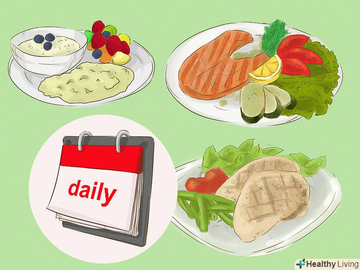 Складіть план харчування.збалансований раціон з обмеженням за калоріями і розмірами порцій вкрай важливий для схуднення. Розробіть план харчування самостійно, зверніться за допомогою до лікаря або дієтолога або підберіть книги або дієту, якої Ви зможете дотримуватися, в Інтернеті.- Виділіть пару годин на складання меню, включаючи перекушування. Так вам буде простіше готувати і контролювати свої звички кожен день.