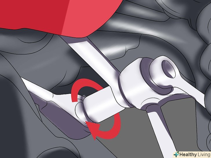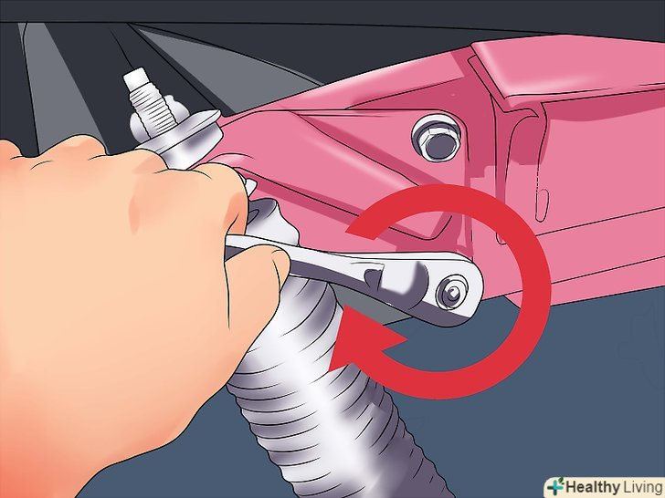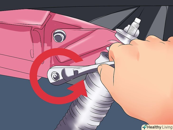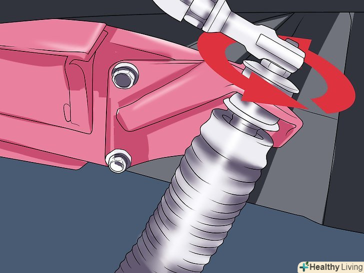 Відкрутіть болти, що кріплять амортизатор.на більшості автомобілів дістатися до болтів, що утримують амортизатор, можна, але тільки лише піднявши тканинну оббивку багажника. Їх можна відкрутити ключем з тріскачкою і підходящої битою. Щоб дізнатися більше про розташування і демонтаж амортизаторів, читайте інструкцію з експлуатації. Але, якщо в загальному випадку, Болти будуть перебувати в багажнику.- Болти в амортизаторах відкручуються проти годинникової стрілки, іноді потрібно застосувати мастило, щоб їх відкрутити.