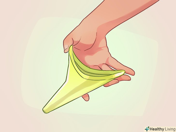 Метод воронки.використовуйте жіноче судно або спеціальний пристрій, що дозволяє мочитися стоячи.[5] пристосування для сечовипускання існують вже майже 100 років,[6] і їх функціональність стала значно краще. В інтернет-аптеках і на спеціальних веб-сайтах можна купити одноразові і багаторазові моделі.- Вимийте руки.