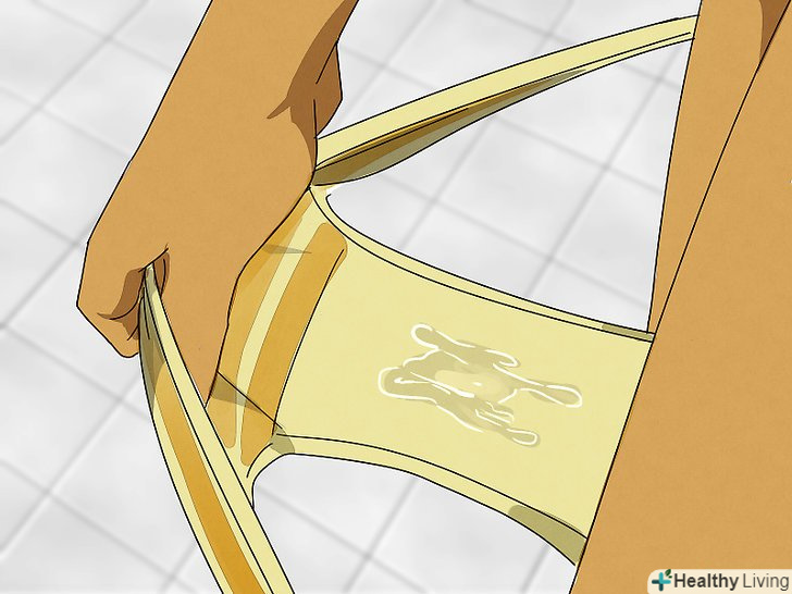 Зауважте, чи бувають у вас нічні полюції. полюції означають, що уві сні у вас виникає сексуальне збудження, і ви еякулюєте насінну рідину. Насіннєва рідина липка і містить сперму. Іноді ви можете згадати, що в цей час вам снився сон сексуального змісту, але частіше за все ви просто виявите вологе пляма на своїй піжамі, трусах або простирадла, коли прокинетеся.[19]- Якщо у вас була нічна полюція, потрібно вимити пеніс і випрати забруднений одяг або постільну білизну.