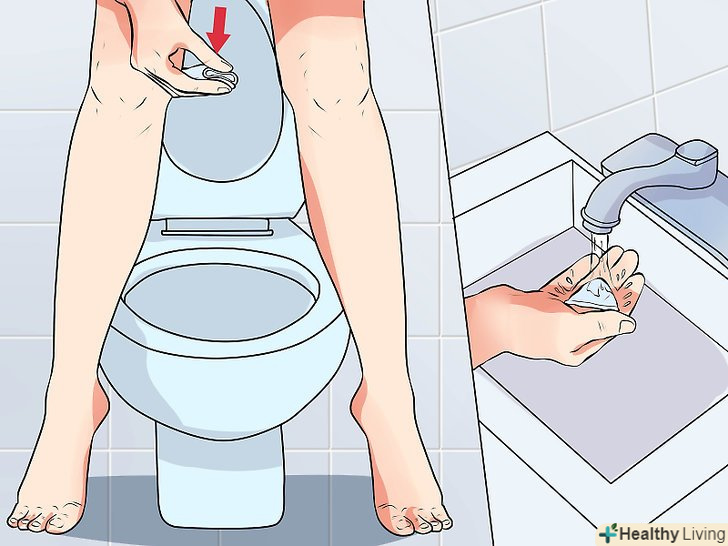 Процес спорожнення менструальної чаші.процес спорожнення менструальної чаші може виявитися менш чистим.[56] коли ви витягуєте менструальну чашу, вона наповнена зібраними в неї виділеннями за останні 8-12 годин.[57]- Вам буде потрібно певна практика, щоб виробити для себе найбільш зручний спосіб вилучення чаші. Багато жінок роблять це над унітазом, щоб не пролити чашу на одяг або на підлогу.[58] при наявності можливості ви можете попрактикуватися в добуванні чаші в душі.