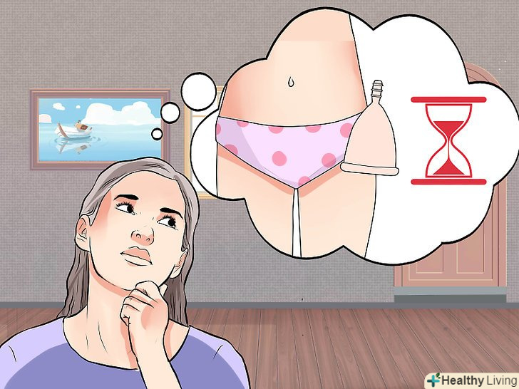 Дайте собі деякий час на звикання до менструальної чаші.коли ви виберете марку і розмір менструальної чаші, дайте собі деякий час на звикання до цієї чаші.[6] у період звикання додатково до чаші носите звичайну або щоденну прокладку для захисту від протікання.- Вам може знадобитися пройти через пару менструальних циклів, щоб остаточно визначитися з тим, чи є ваш перший вибір ідеально відповідним вам варіантом.[7]